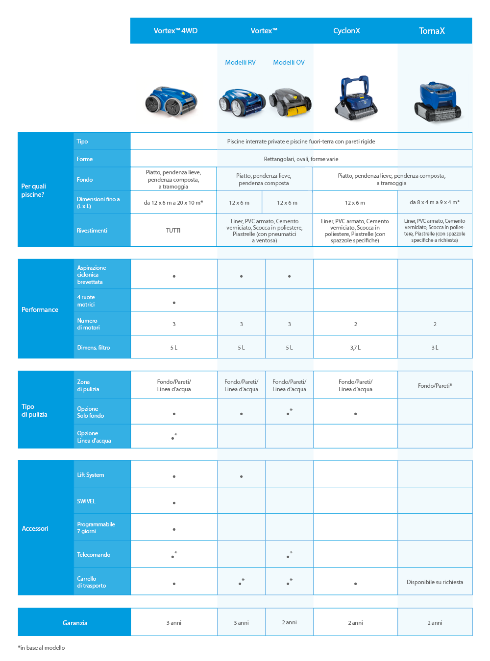 Veri e propri robot fuoristrada, si adattano a qualsiasi tipo di rivestimento, aderiscono perfettamente alle pareti e superano facilmente gli ostacoli. Questi robot sono dotati dell’aspirazione ciclonica che consente una pulizia potente e un utilizzo prolungato della piscina. Grazie alla tecnologia Lift System, sono anche più leggeri all’uscita dall’acqua.
